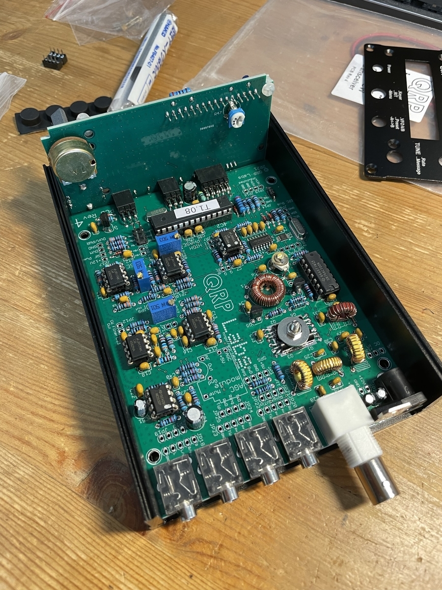 ダミーロードを接続して送信すると 2W 程度の出力でした。16V まで電圧を上げればもう少し出るようです。このリグで交信するには技術基準適合証明を受けていない機器として審査を受けないといけませんが何から手を付けていいのかわかりません。当面はCWデコードさせて受信練習用に使ってみます。。