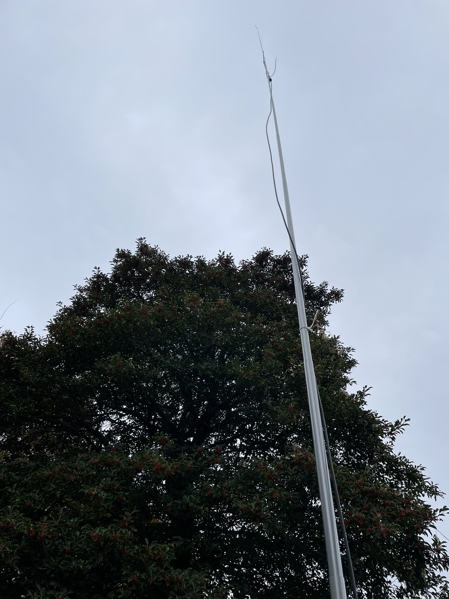 430MHz のホイップアンテナを釣り竿の先っちょに付けました。