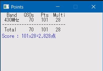 結果:昨年、自宅から参加したときとほぼ同じ点数でした。CW 30局、FM 40局。